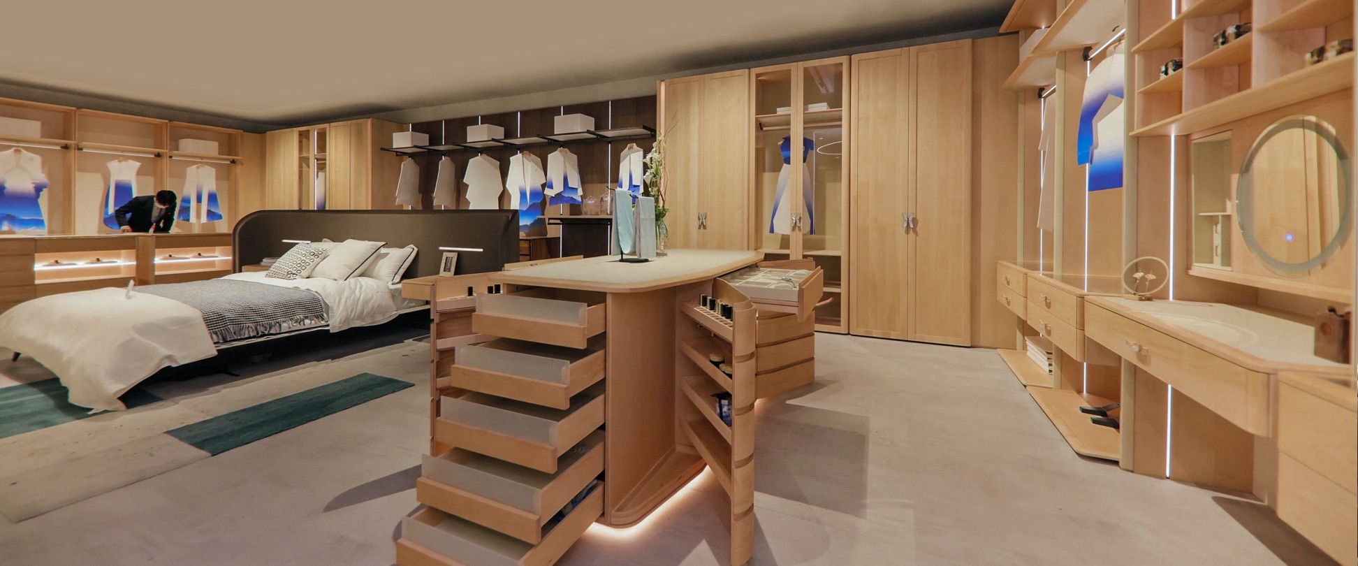 现今,人们对高定产品的品质要求,不仅局限于产品本身,正越来越关注整体空间、智能应用等,尤其是落户到家的服务体系,更有高标准、高质量以及高效率的要求。而随着国人审美意识的觉醒、审美能力的提升,“风格”越来越成为一种禁锢。既然高定是专属的、独一无二的,意味着任何的外观、色彩、线条、纹理、质感都可以被需要和呈现,也无须再用风格去框定。A8空间曾经做过很多风格类型的产品,最终形成了“去风格化、无边界化”的产品风格。